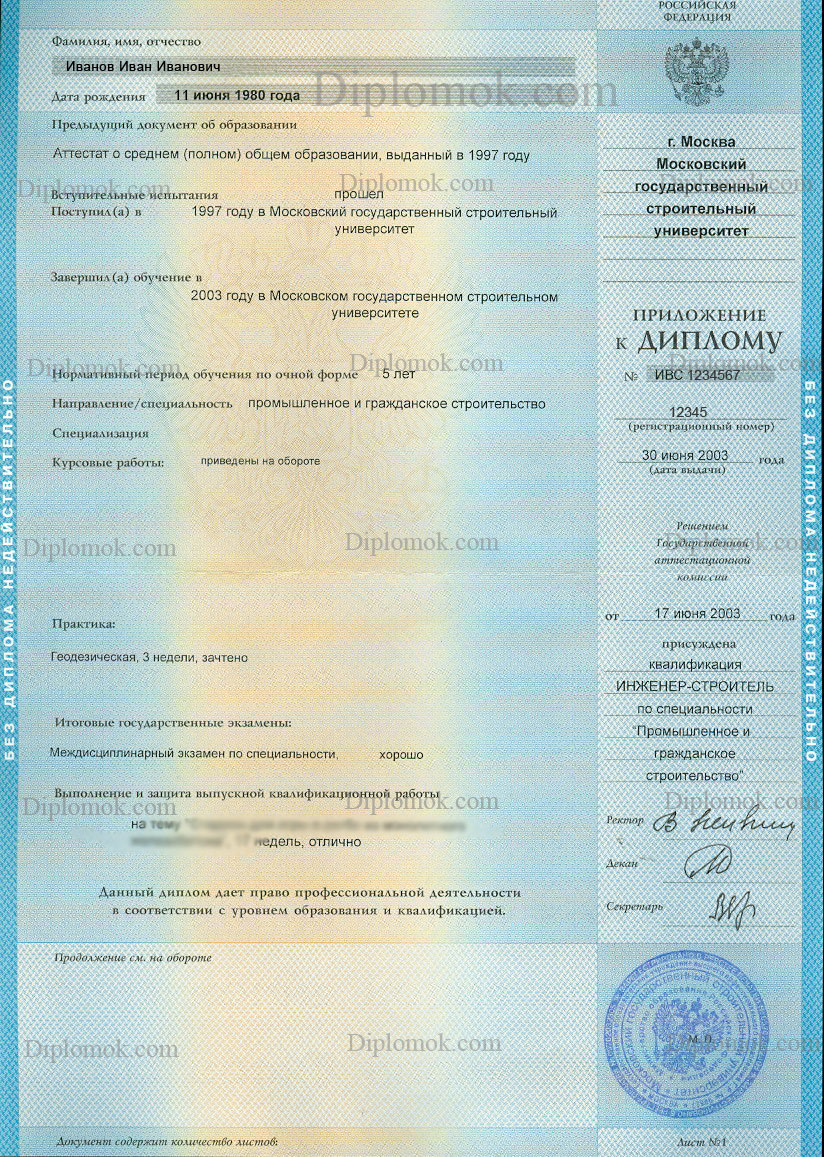 Стоит принять во внимание, что Вы можете приобрести документ, сделанный по присланному образцу. Если у Вас есть скан-копия диплома 1997-2003 годов выдачи, полученного кем-то из Ваших близких, то можете прислать его нам, а мы заполним бланк точно так, как и присланный образец. Обращайтесь!