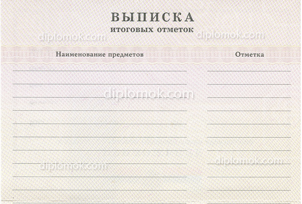 Вы можете купить вкладыш к аттестату, сделанный по присланному образцу. Если у Вас есть фотография документа, полученного кем-то из Ваших знакомых / родственников, пришлите ее нам, а мы заполним бланк точно также, изменив только личные данные. Обращайтесь!